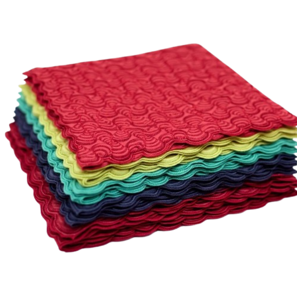 Offering a natural, breathable fabric with a soft yet structured feel. Its surface is defined by a richly textured finish and carefully developed, intricate patterns that add depth and visual interest without compromising comfort.